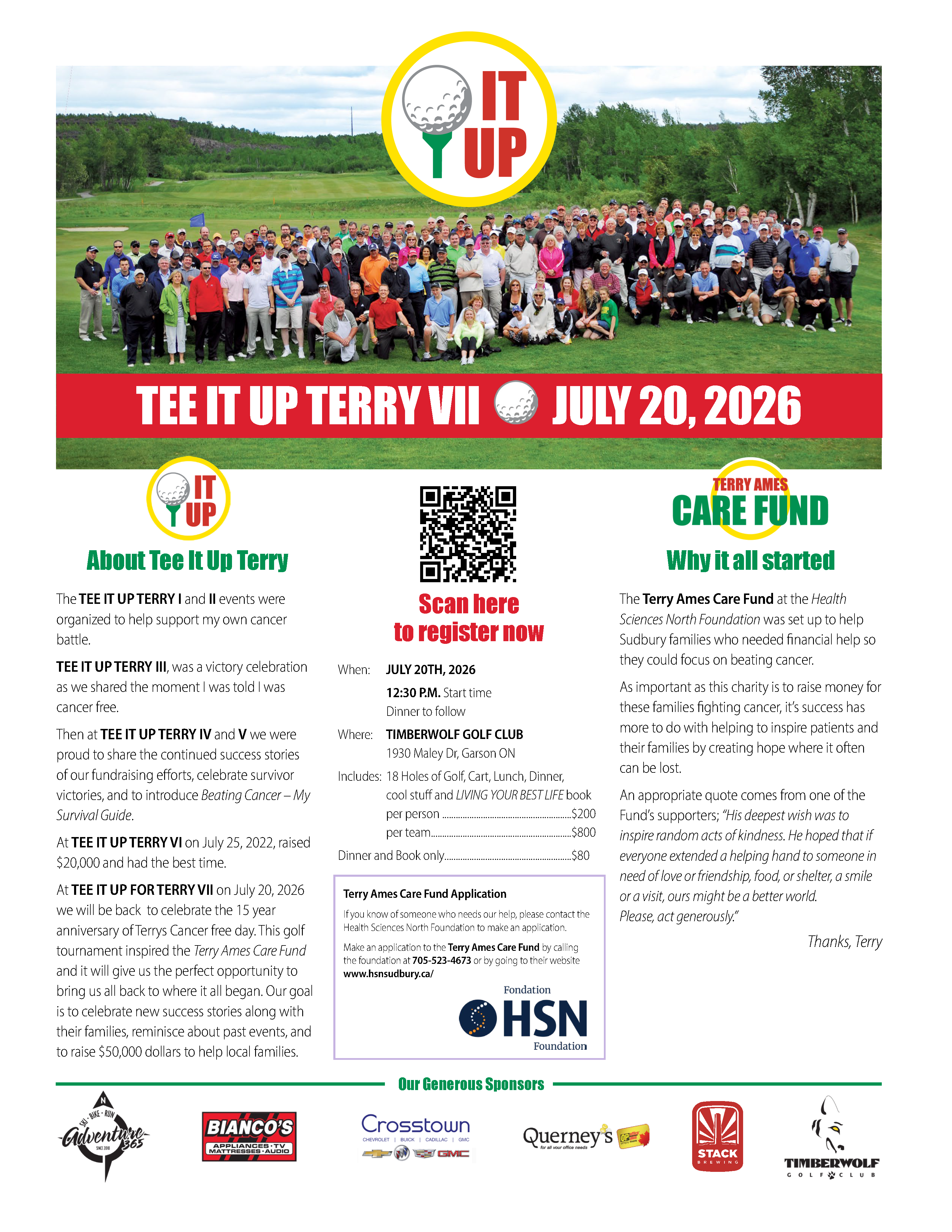 The first two Tee it up for Terry events were set up to help support my own cancer battle. At the second Tee it Up, i told everyone we would be back at Timberwolf for a party when i was cancer free. Well Tee it up for Terry III, was a victory celebration as we shared the moment I was told I was cancer free. At Tee it up for Terry IV we celebrated some of the success stories of our fundraising efforts. And finally at Tee it up for Terry V, we continued to raise funds, celebrate survivor victories, and to introduce Beating Cancer – My Survival Guide.
